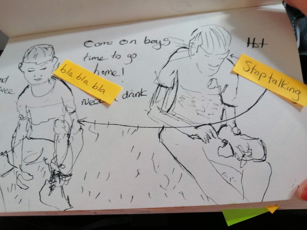 Here is an illustration I created while I thought back on a walk I took with my children. As you can see, it was not as relaxing as I had hoped and is the sort of thing that I would put into the diary.