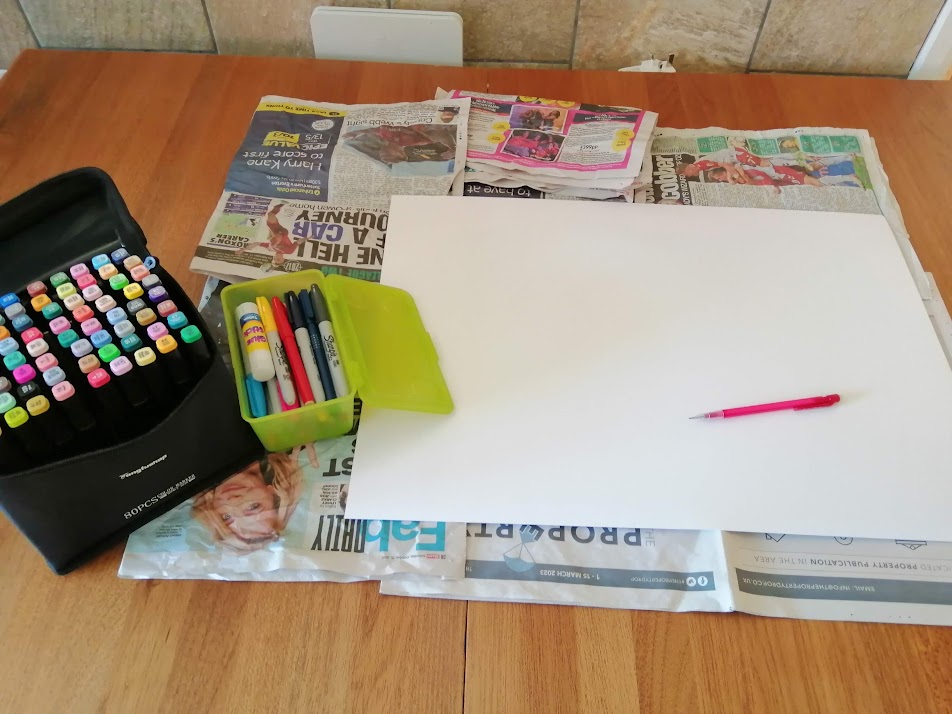 Looking around, I picked up some coloured markers and sat down in front of the card.