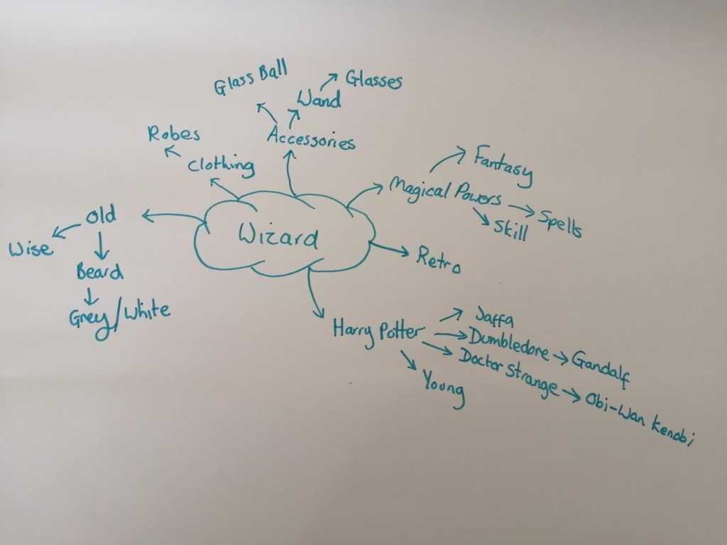 - Introduce new ideas to your map or diagram to help broaden your associations, for example, thinking about the sound, smell, touch, or movement of your concept/ideas as much as their image. Think about how you can use lateral thinking techniques as further prompts.