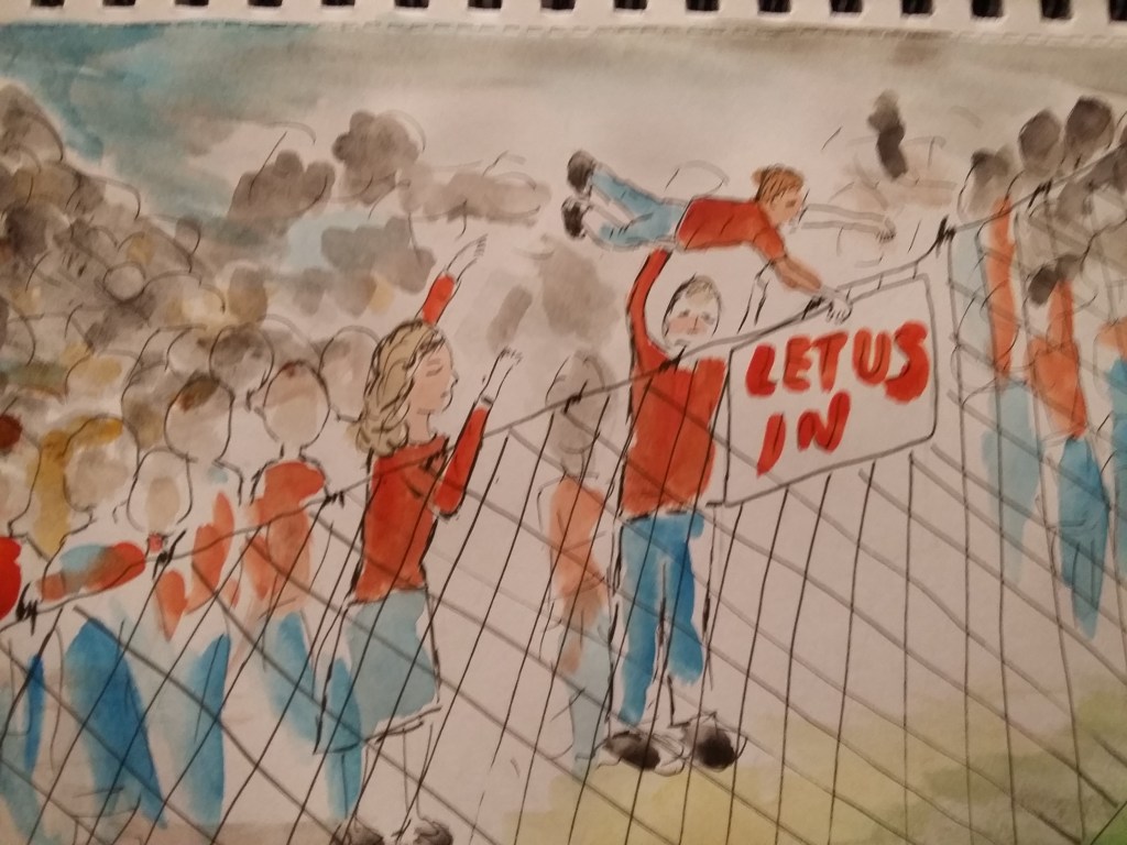 The contrast of these different elements, I hoped, would create a powerful message about the human cost of war and displacement.