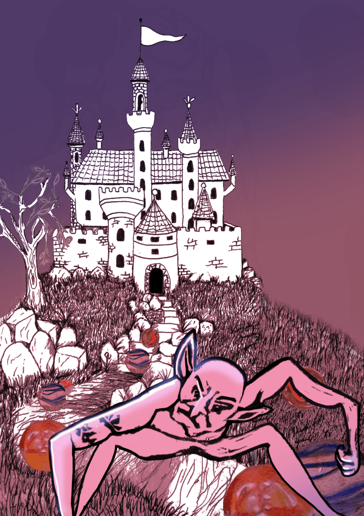 I wanted to capture the essence of a children’s fantasy book, where anything is possible and the surreal comes to life. By blending the image of a castle a troll and rolling marbles, I aimed to evoke a sense of wonder and adventure.