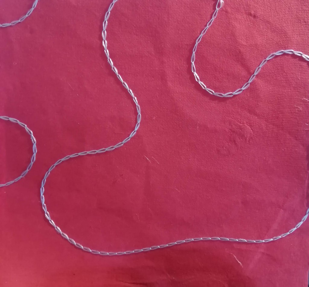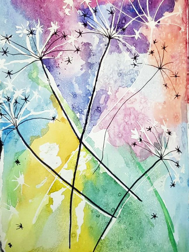 This collage is a personal piece. Each image holds a special significance, representing different aspects of my life and experiences. The flowers were given by my closest friends and the autumn view is a photograph of my favourite place to walk with my dog, it is tucked away and not widely known about. The coloured lines represent the people I have crossed paths with during my life and the journey I have taken.