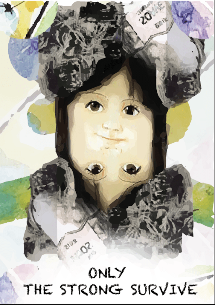 I enjoyed making this collage as I felt it expressed a lot of emotion. The content in this collage was intended to express the emotional struggle of individuals with depression, highlighting the stark contrast between their outward appearance and their inner troubles. It also made me think about the deceptive nature of social media, where people often portray a facade of happiness despite internal struggles. I hoped this collage conveys this concept through using an illustration of a girl appearing happy at one angle, but appearing sad when the image is rotated. I hoped it emphasised the importance of truly seeing and understanding others.