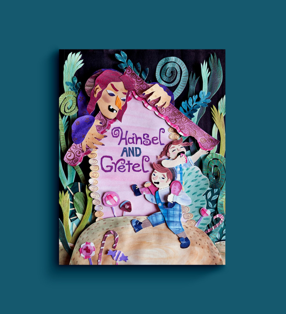 One of my personal favourite stories growing up as a child was Hansel and Gretal. It was lovely to see her interpretation of the story through her creative paper illustration for the front cover of this book.