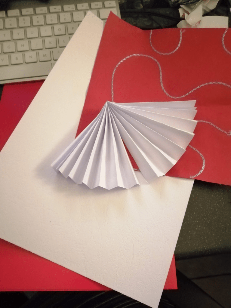 Having to abandon the work for a few days because I was too sick encouraged me to attempt something else. Rereading the brief, I noticed that it did mention that I may create my own origami designs. That’s what I ultimately chose to do. Upon opening my scrapbook cabinet and discovering some red paper and cards, I decided to give it another go at creating an origami figure in my own unique way.