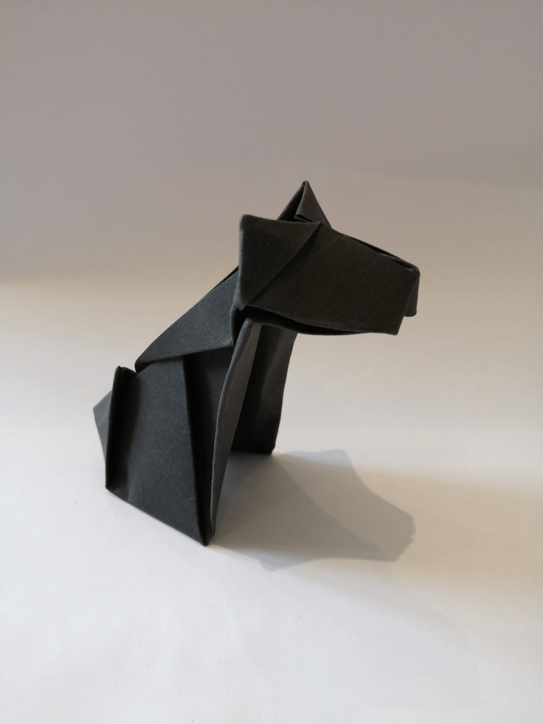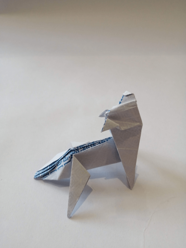 Not giving in, I decided to make one more attempt at making a wolf, and to my surprise, I managed it. I finally had a sense of accomplishment as I held up my completed origami wolf, or perhaps puppy?