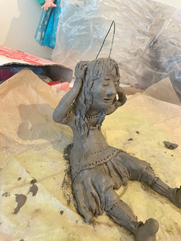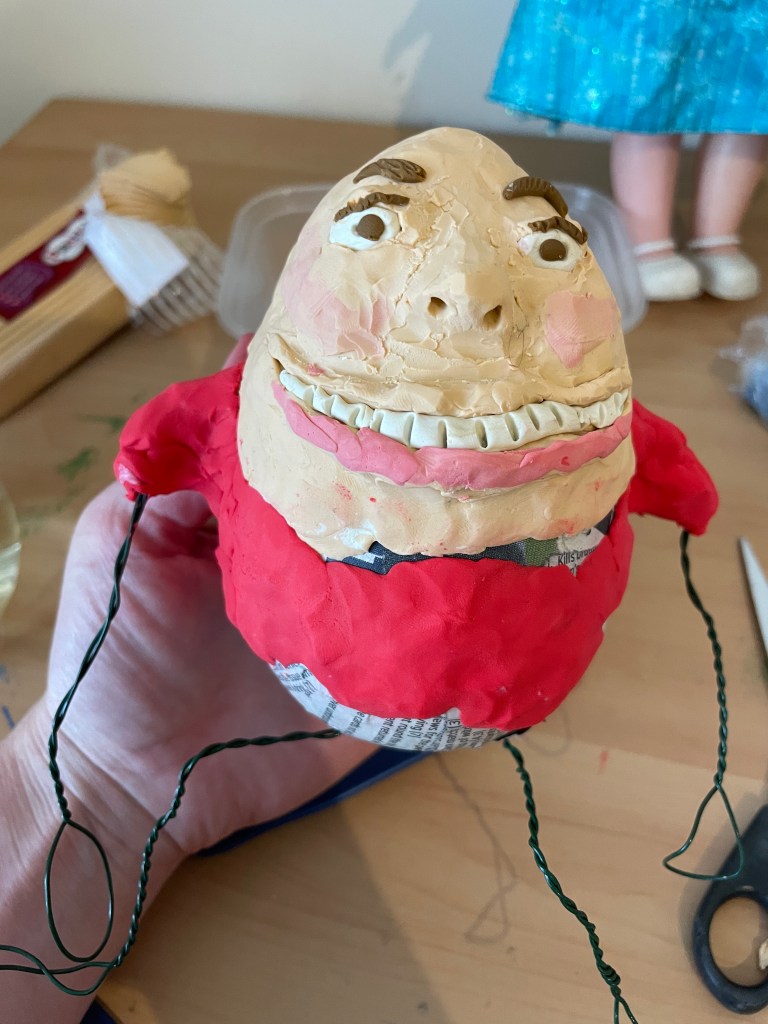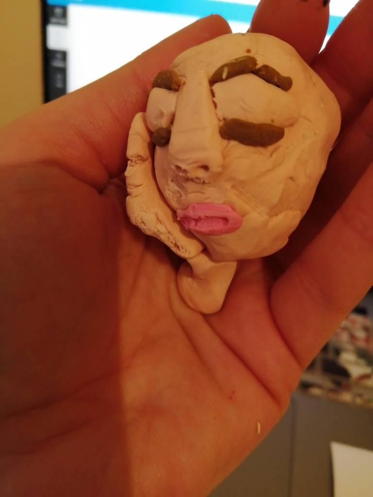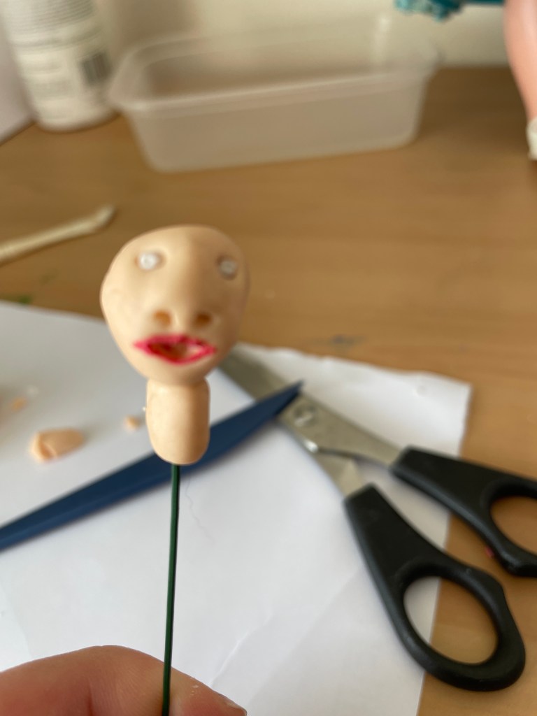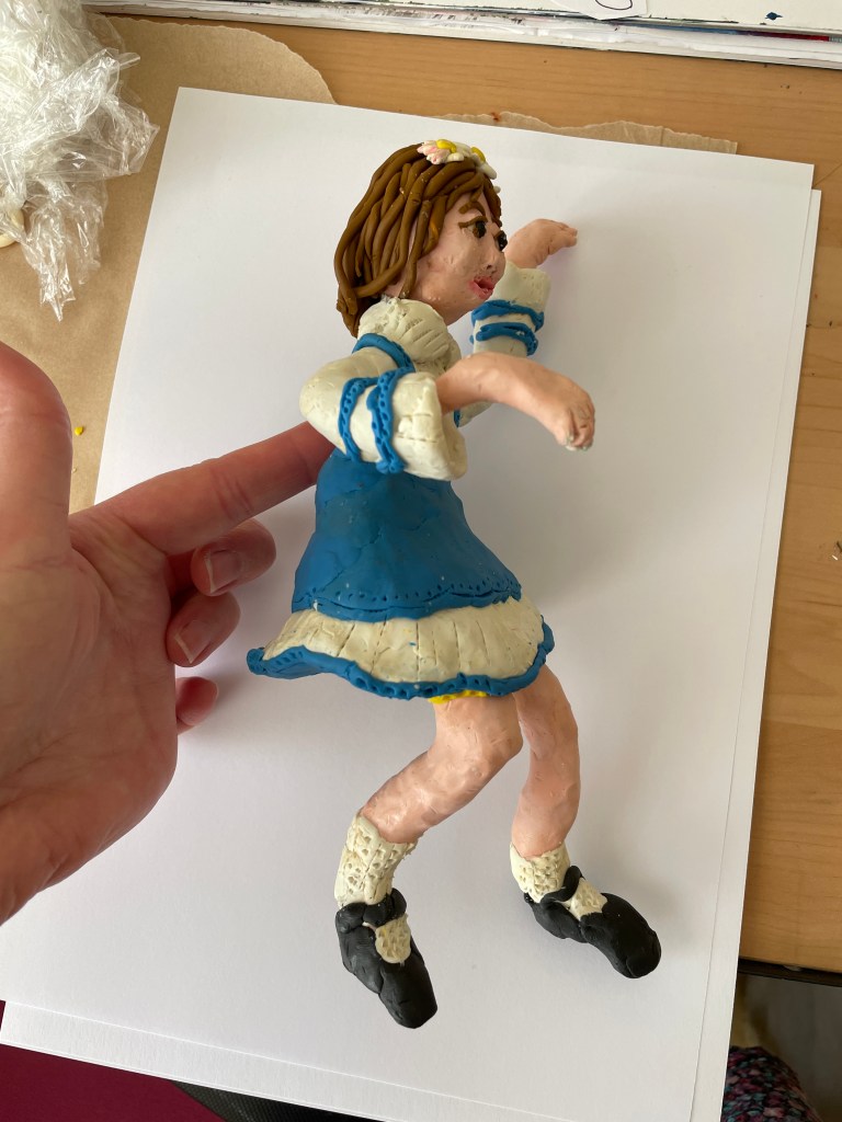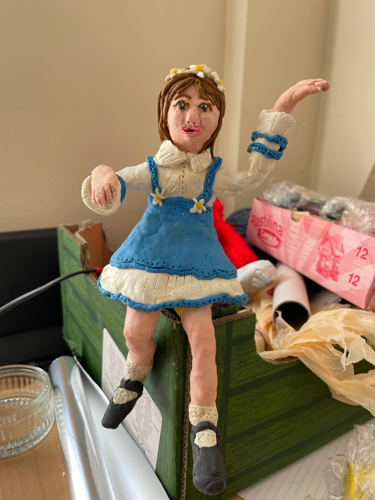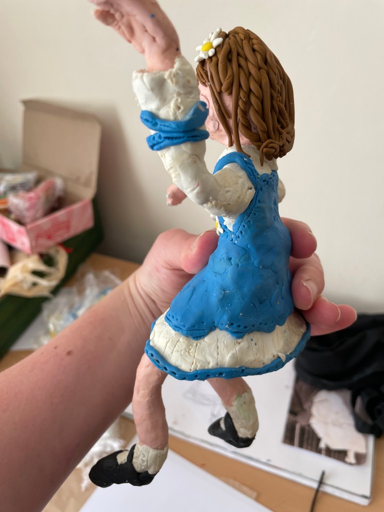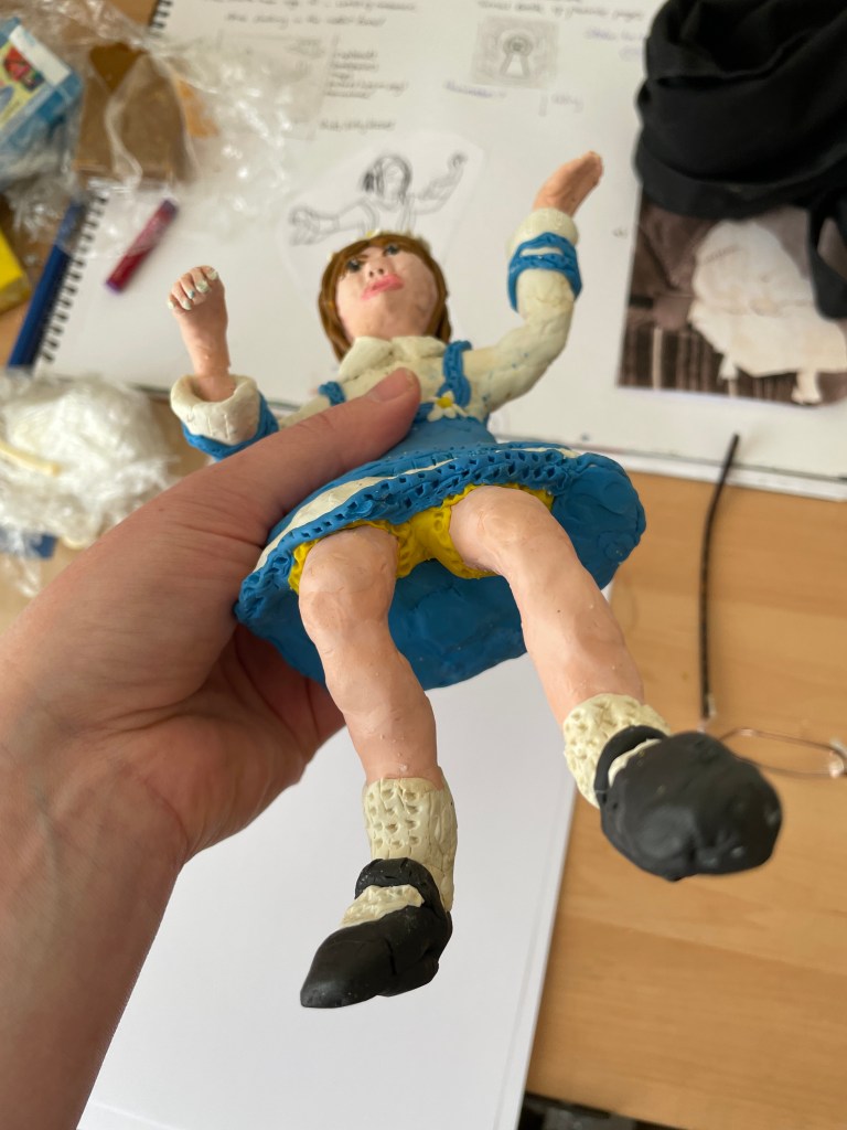 After creating the thumbnail sketches I began considering how to make Alice. I thought of the exercise I had previously completed which was about working small and started trying to make Alice using Fimo clay.
