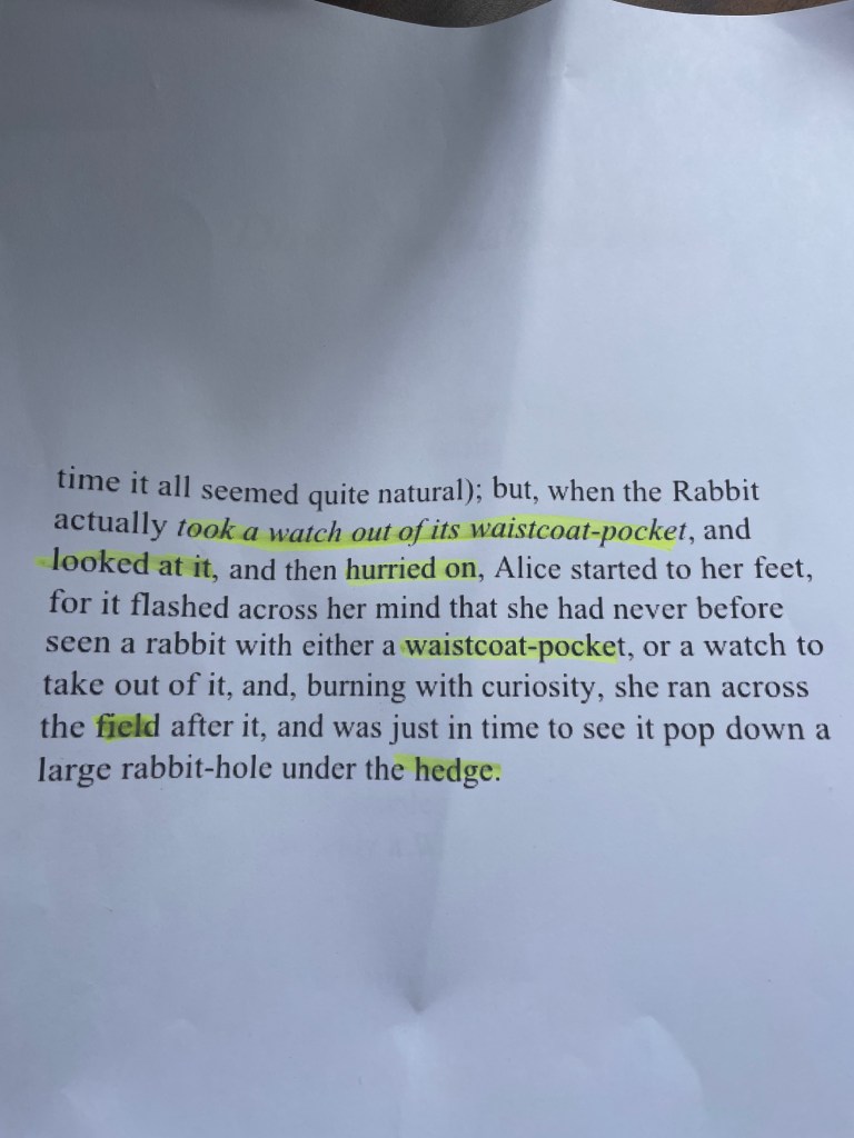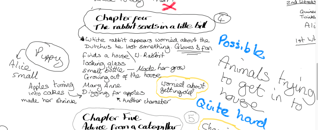 First, I downloaded the book ‘Through the Looking Glass’, which I learnt was free to read on Google Play (Google.com, 2024). Due to my dyslexia, I found it helpful to listen to an audio version of the book too (Reads, 2024). While reading the book, I took notes on specific paragraphs that I felt would create interesting pictures.