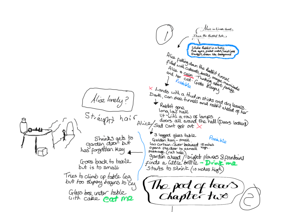 Brainstorming Alice stopping for a rest to find a gold crown appear on her head