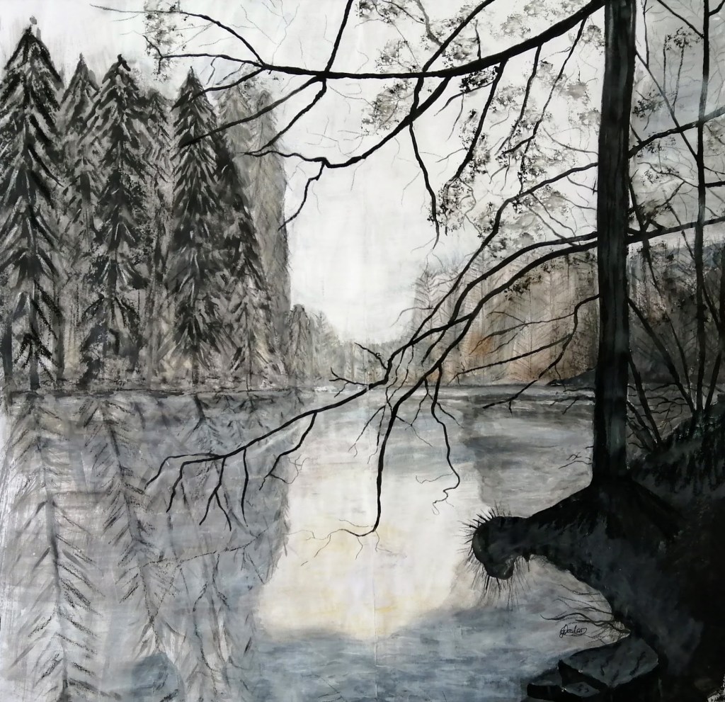 I decided would be a lovely place to add my illustration of a lake that I had previously created for one of the exercises during this course.
