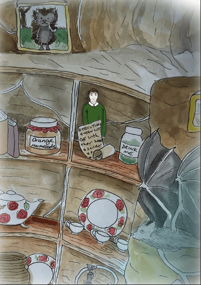 The final image was going to be based on Tweedle Dee and Tweedle Dum. However, there was a change of plan that happed by accident. For research purposes and to hopefully give me more inspiration I researched a book called ‘The story of Alice’ by Robert Douglass and found the only book available was based in a libary twenty minutes away.