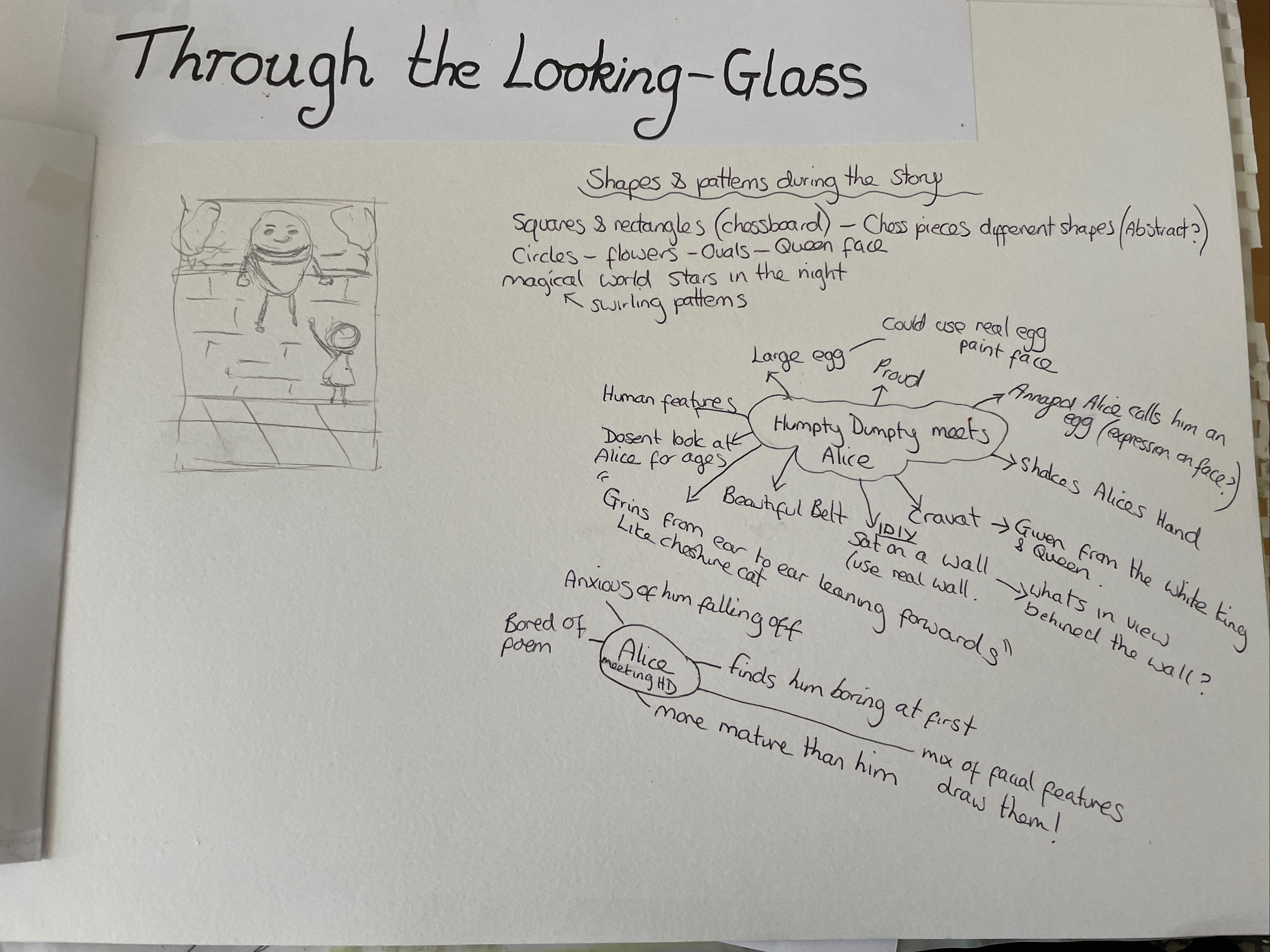 Building on my previous work inspired by Alice in Wonderland, this new project will focus on the sequel, Through the Looking Glass. My aim is to develop and refine my creative process by exploring different characters, settings, and themes from the book. The emphasis will be on thinking unconventionally and pushing the boundaries of my artistic practice.
